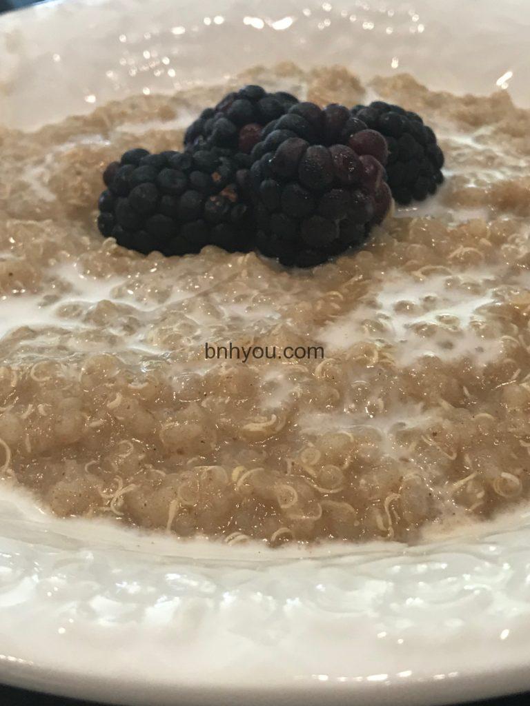 I love eating quinoa for breakfast. Quinoa is good for your food and a staple in my kitchen. Did you know that quinoa is one of the most protein-rich foods we can eat? It is a complete protein because it includes all nine essential amino acids (the Word’s Healthiest Foods).