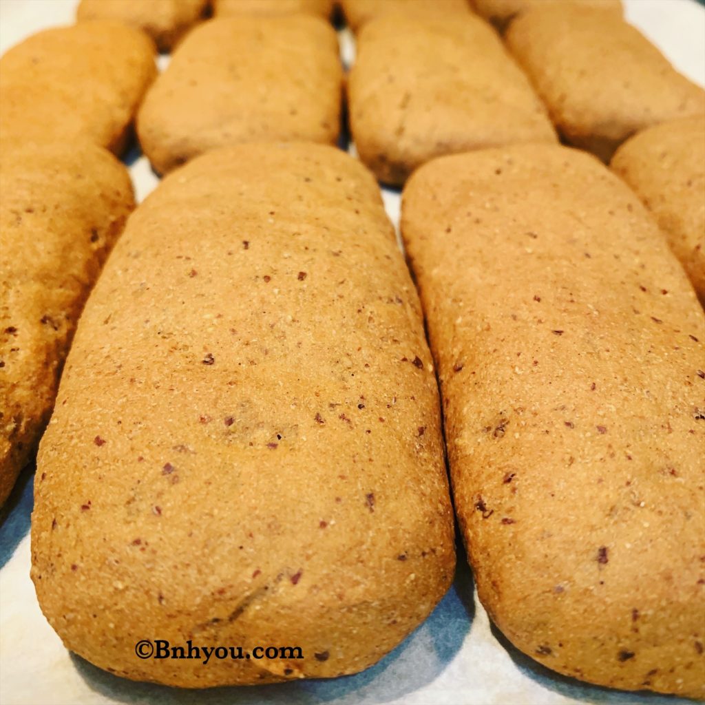 - Place rolled bread in the preheated oven until nicely browned about 30 -45 minutes.